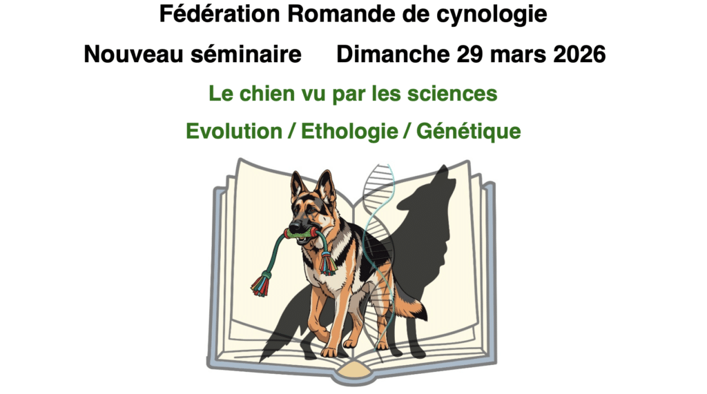 Le séminaire « Le chien vu par les sciences : Evolution / Ethologie / Génétique » se déroulera le 29 mars de 8h30 à 16h00 à Bussigny. Il traitera de l’histoire du chien, de l’anthropologie, de la philosophie, de l’instinct et de la curiosité du chien, ainsi que des croyances et idées reçues concernant l’impact de la génétique sur nos amis à quatre pattes.